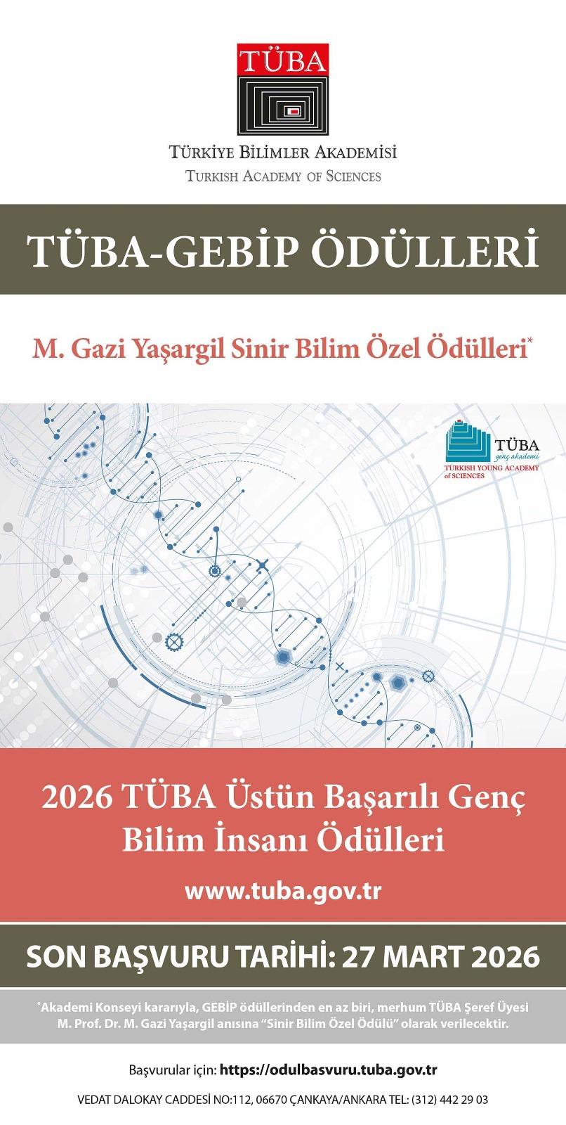Türkiye Bilimler Akademisi tarafından düzenlenen TÜBA Üstün Başarılı Genç Bilim İnsanı Ödülleri (TÜBA-GEBİP) 2026 başvuruları başladı.